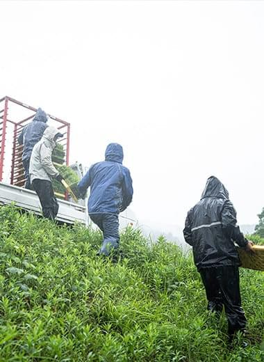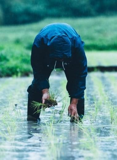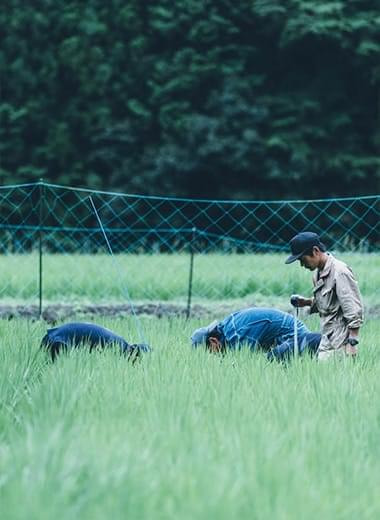 Dès le printemps et avant la fin des premières gelés matinales, le sol sort de sa léthargie et requiert les premiers soins. Le travail de la terre débute alors que le saké fraichement pressé continu sa lente maturation. La structure du sol et sa composition sont minutieusement contrôlées et travaillées afin de permettre à la plante d’en exploiter toute la richesse.
